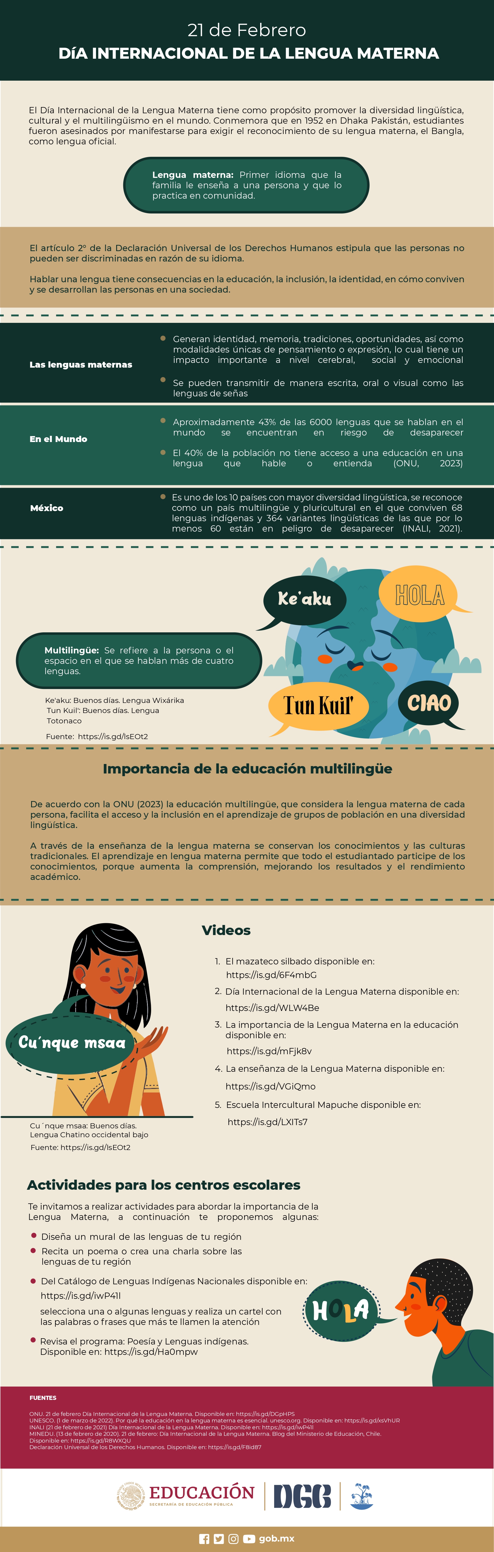 La Secretaría de Educación Pública, la Dirección General del Bachillerato, Preparatoria Abierta y los Centros de Atención para Estudiantes con Discapacidad presentan el siguiente material en conmemoración del 21 de febrero, Día Internacional de la Lengua Materna.
